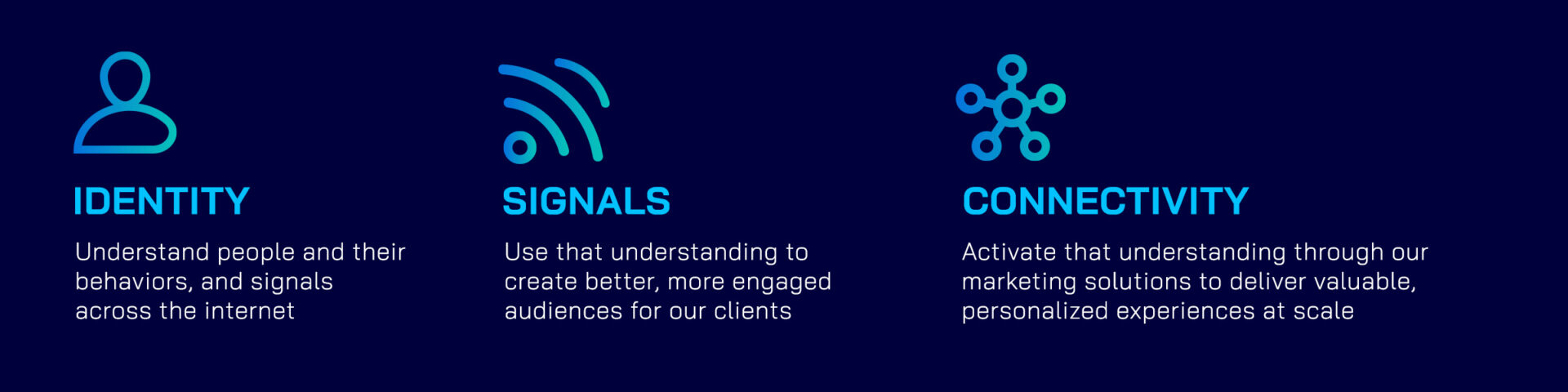 Zeta carries your data from consumer signals to individualized experiences at scale. We can supplement the quantity of those signals with 750 million deterministic digital profiles in our permission-based Data Cloud.