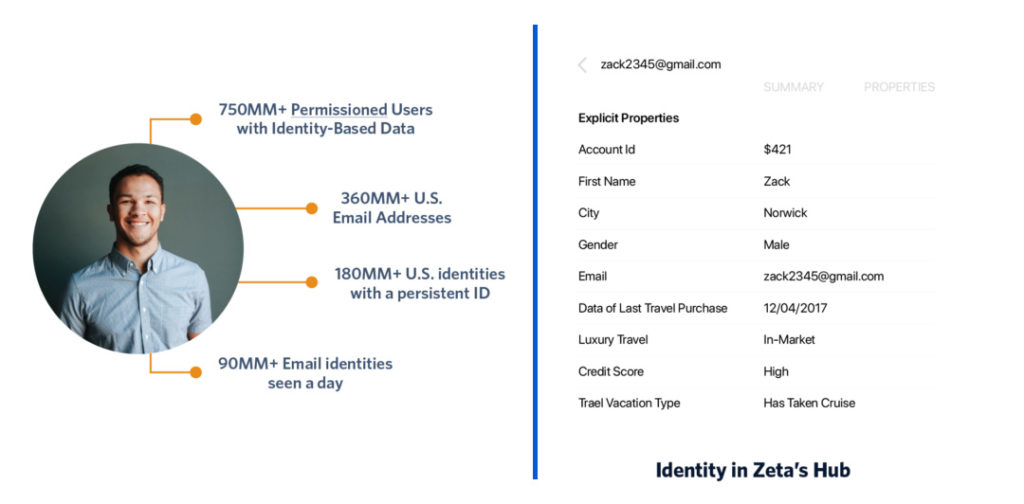 By using the Zeta Marketing Platform, you can map your customers to our permission-based Data Cloud, allowing you to activate higher-value engagements in real-time. For example, what would you do if you could provide individualized value to millions of “Zacks”?